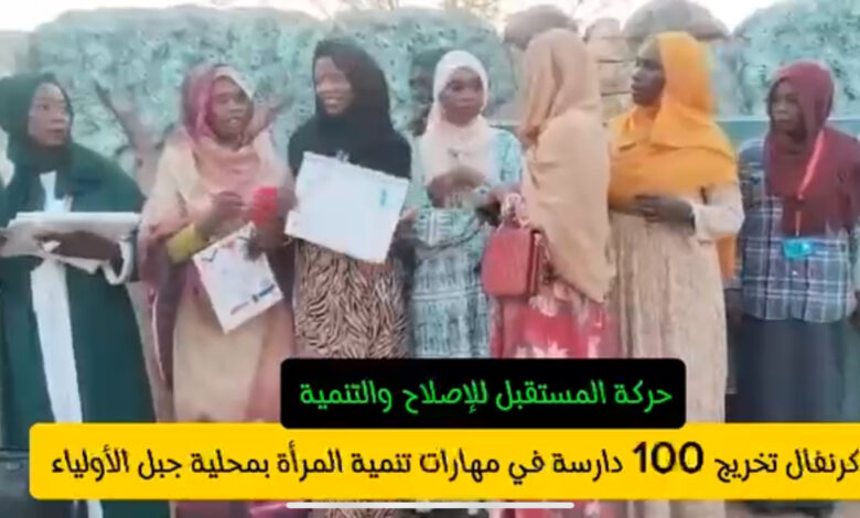 نظّمت حركة المستقبل للإصلاح والتنمية بمحلية جبل أولياء كرنفال تخريج (100) دارس ودارسة ضمن دورة تنمية مهارات المرأة التي أقيمت في منطقتي الأزهري شمال والأزهري شرق، وذلك بحضور عدد من قيادات الحركة.